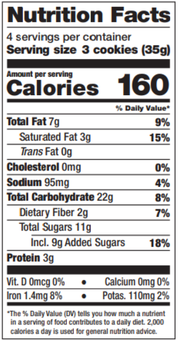 OAT FLOUR, SUGAR, SEMI-SWEET CHOCOLATE CHIPS (SUGAR, UNSWEETENED CHOCOLATE, COCOA BUTTER, DEXTROSE, SUNFLOWER LECITHIN), CANOLA OIL, WATER, COCONUT OIL, TAPIOCA STARCH, DEFATTED CHICKPEA FLOUR, INVERT SUGAR, MOLASSES, SUNFLOWER LECITHIN, SEA SALT, NATURAL FLAVOR, LEAVENING (BAKING SODA, MONOCALCIUM PHOSPHATE), XANTHAN GUM, CREAM OF TARTAR.